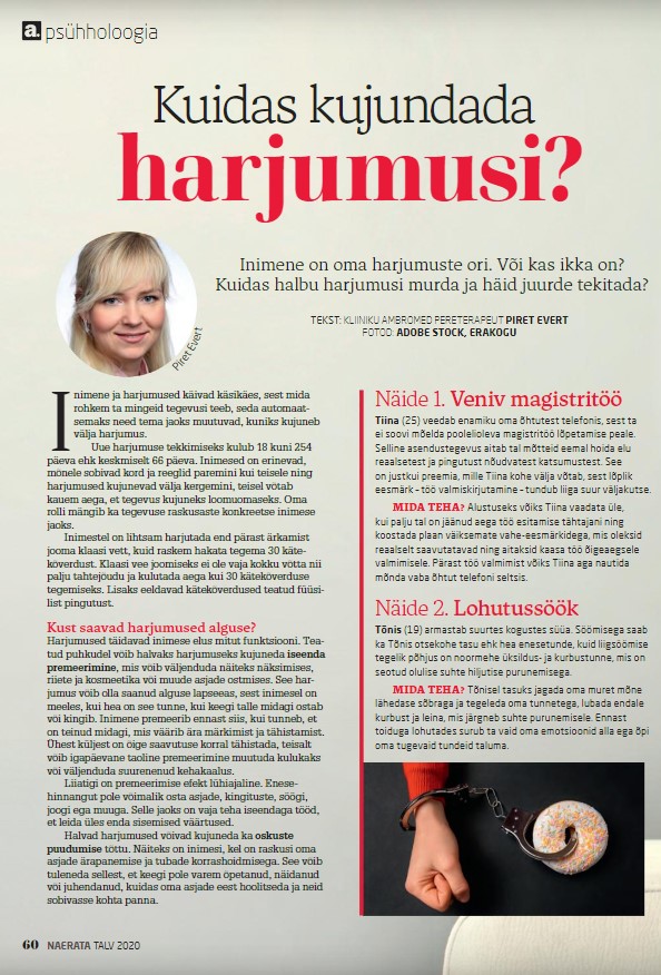 Pereterapeut Piret Everti artikkel "Kuidas kujundada harjumusi?"
